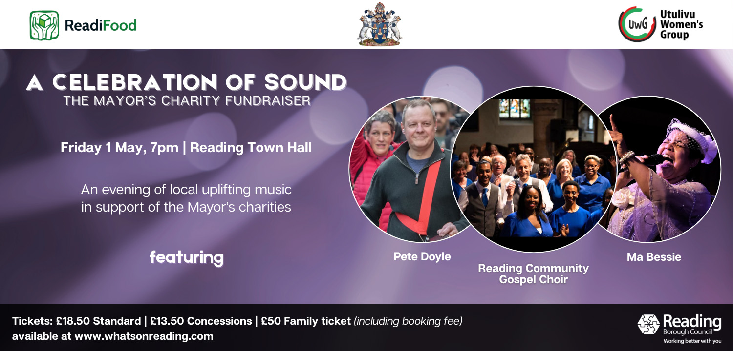 This year, the Mayor is proud to support two important local charities: Readifood and Utulivu Women’s Group. Readifood provides vital help to people and families across Reading facing food poverty and financial hardship, while Utulivu Women’s Group offers support, connection, and empowerment to women in the local community. By attending, you’ll not only enjoy a fantastic evening of live entertainment, but also help raise awareness and support for two organisations making a real difference.