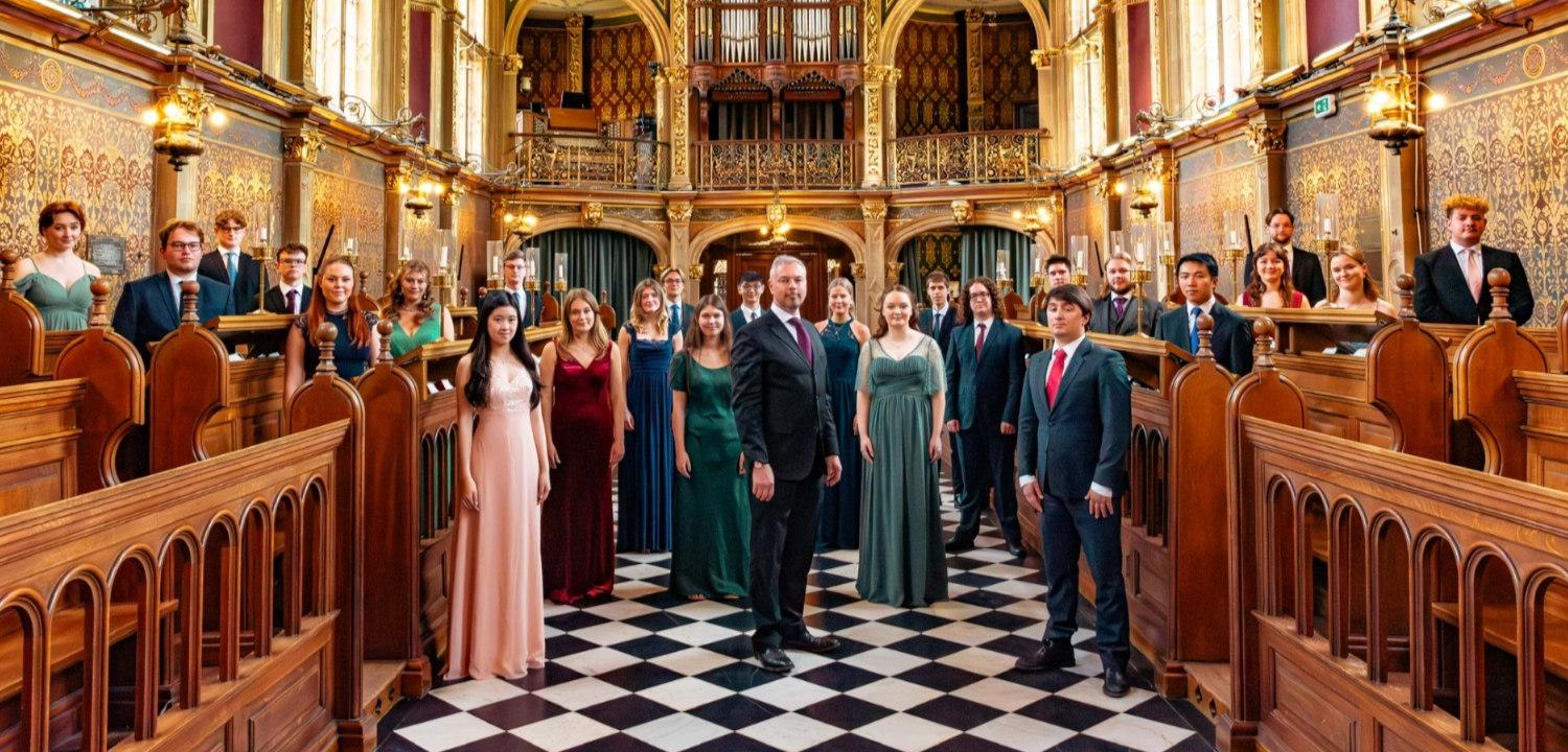 Created at the time of the foundation of Royal Holloway in 1886, the choir was originally only for women’s voices. The mixed choir now comprises 24 Choral Scholars who undertake a busy schedule of weekly services, as well as concerts, international tours, recordings, and TV and radio broadcasts. They are the only choir to give a weekly concert performance and during an average year give around 40-50 concerts with a particular specialism in contemporary music.
